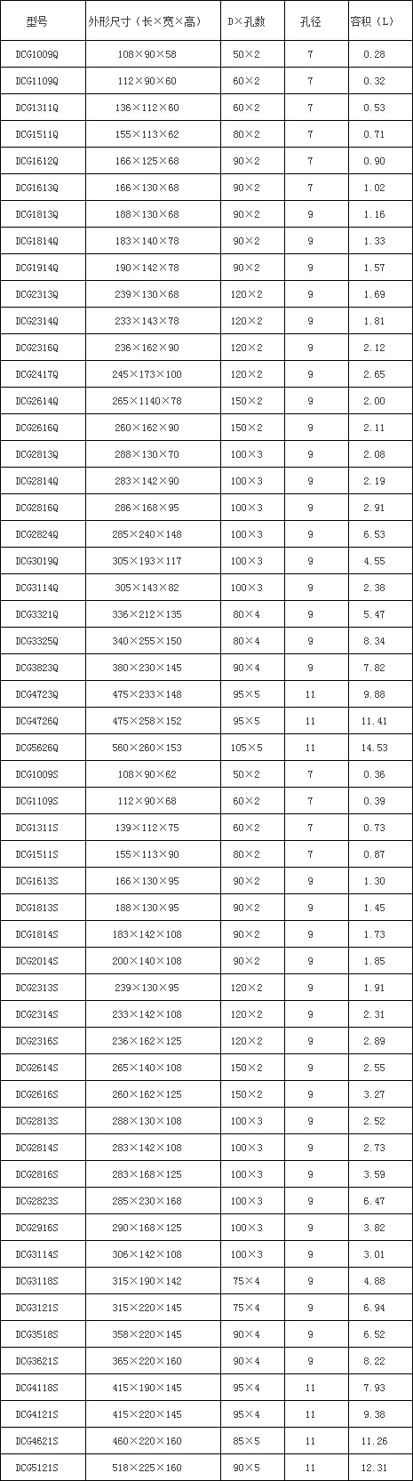 整體型優質鋼材拉伸畚斗規格及技術參數:(Q是代表淺型畚斗,S是代表深型畚斗)